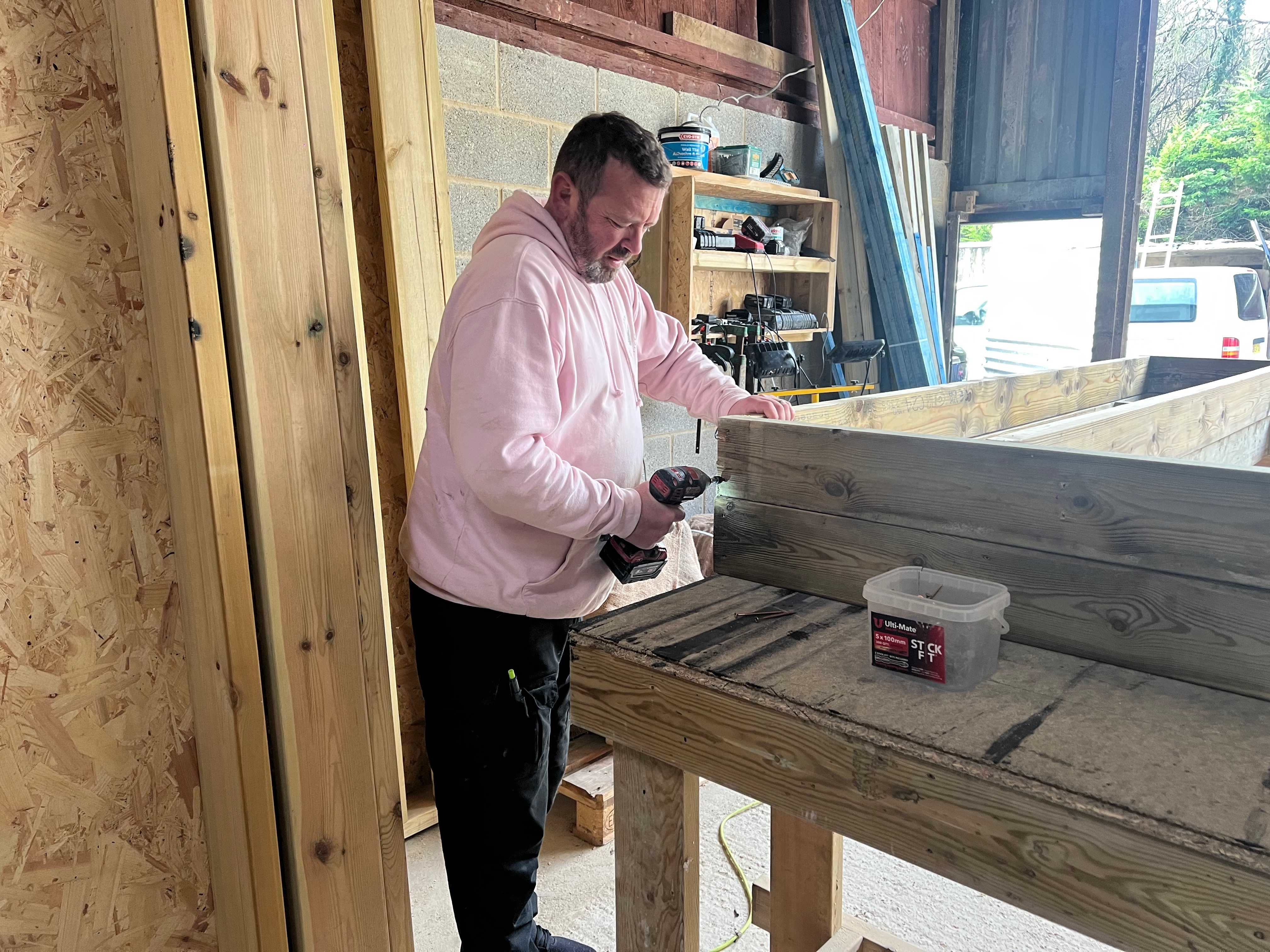 This project includes elements of Timber Frame Construction and Carpentry.